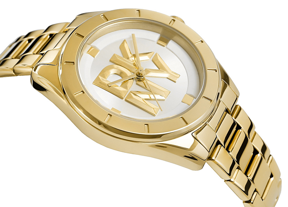 Zegarek DKNY to odważny manifest luksusu, który przyciąga wzrok i podkreśla wyjątkowy styl swojej właścicielki. Złota koperta przyciąga wzrok swoim wyrafinowanym blaskiem, a trójwymiarowe logo DKNY na tarczy dodaje mu nowoczesnej głębi i unikalnego wyrazu. Srebrno/biała tarcza z lustrzanym efektem kontrastuje ze złotymi detalami, tworząc wyjątkowy efekt świetlny, który podkreśla prestiżowy charakter zegarka.