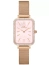 Zegarek damski Daniel Wellington Quadro Lumine Bezel Melrose Pink DW00100669 to elegancki model o prostokątnej kopercie, który wyróżnia się dekoracyjną bransoletą w kolorze różowego złota oraz kopertą zdobioną kryształkami. Zarówno koperta, jak i bransoleta zostały wykonane z wysokiej jakości stali nierdzewnej 316L, pokrytej powłoką PVD, co zapewnia trwałość i odporność na ścieranie. Perłowa, różowa tarcza zegarka ozdobiona jest delikatnymi indeksami, a całość chroni szkło mineralne. Napędzany precyzyjnym japońskim mechanizmem kwarcowym, zegarek łączy funkcjonalność z elegancją.