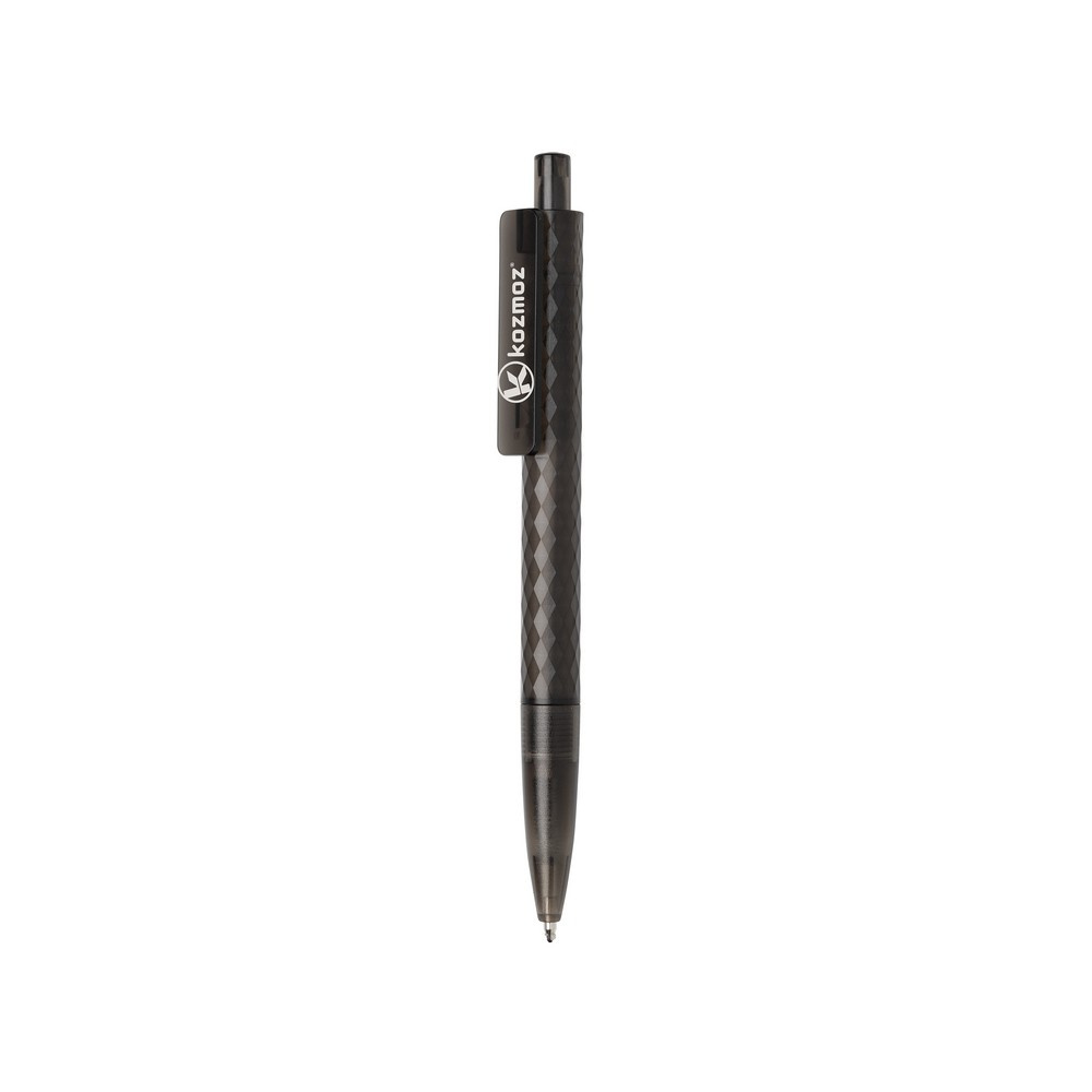 Długopis z geometrycznym wzorem na trzonie, wykonany z PC z recyklingu, niebieski wkład, długość pisania ok. 1200 m, całkowita zawartość materiałów z recyklingu
