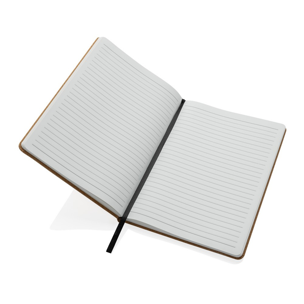 Notatnik A5 (80 białych kartek w linie o gramaturze 120 g/m2), twarda okładka wykonana z korka z certyfikatem FSC®, tasiemka zakładkowa, strony z papieru kamiennego, w