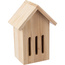 Domek dla motyli z trzema otworami z przodu, które ułatwiają motylowi wejście do środka, posiada metalowy hak do zawieszania umożliwiający przymocowanie domku do