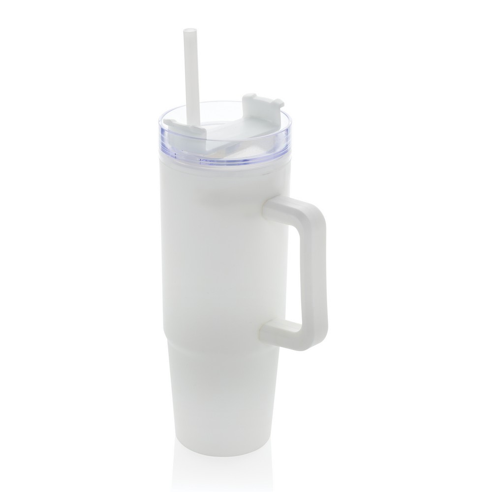 Kubek podróżny 900 ml, ergonomiczny uchwyt, obrotowe wieczko trzema pozycjami (dziubek do picia, otwór na słomkę, zamknięte), szczelny, wykonany z materiałów z