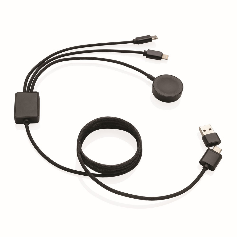 Kabel do ładowania 6 w 1 Terra, bezprzewodowa ładowarka do zegarka, wykonany z recyklingowanego aluminium, PET, ABS i TPE z certyfikatem RCS, podwójne