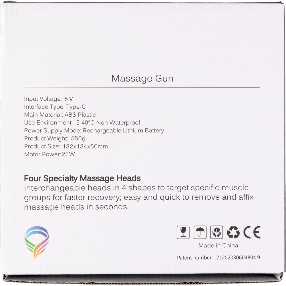 Masażer mięśni z silnikiem szczotkowym (prędkość 1800 - 3200 obr/min) i akumulatorem 1200 mAh, wejście 5V, 6 poziomów intensywności masażu mięśni, pomaga