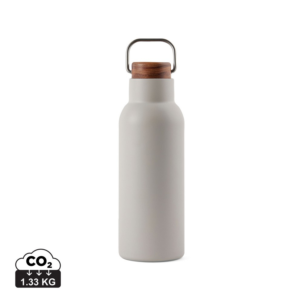 Butelka termiczna 580 ml, podwójne ścianki ze stali nierdzewnej z próżnią pomiędzy, wykonana ze stali nierdzewnej z recyklingu z certyfikatem RCS, drewniane wieczko z