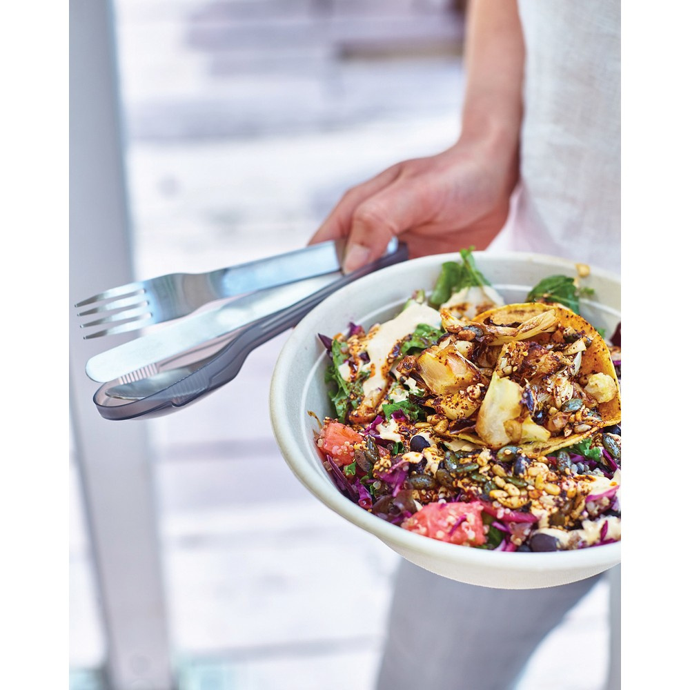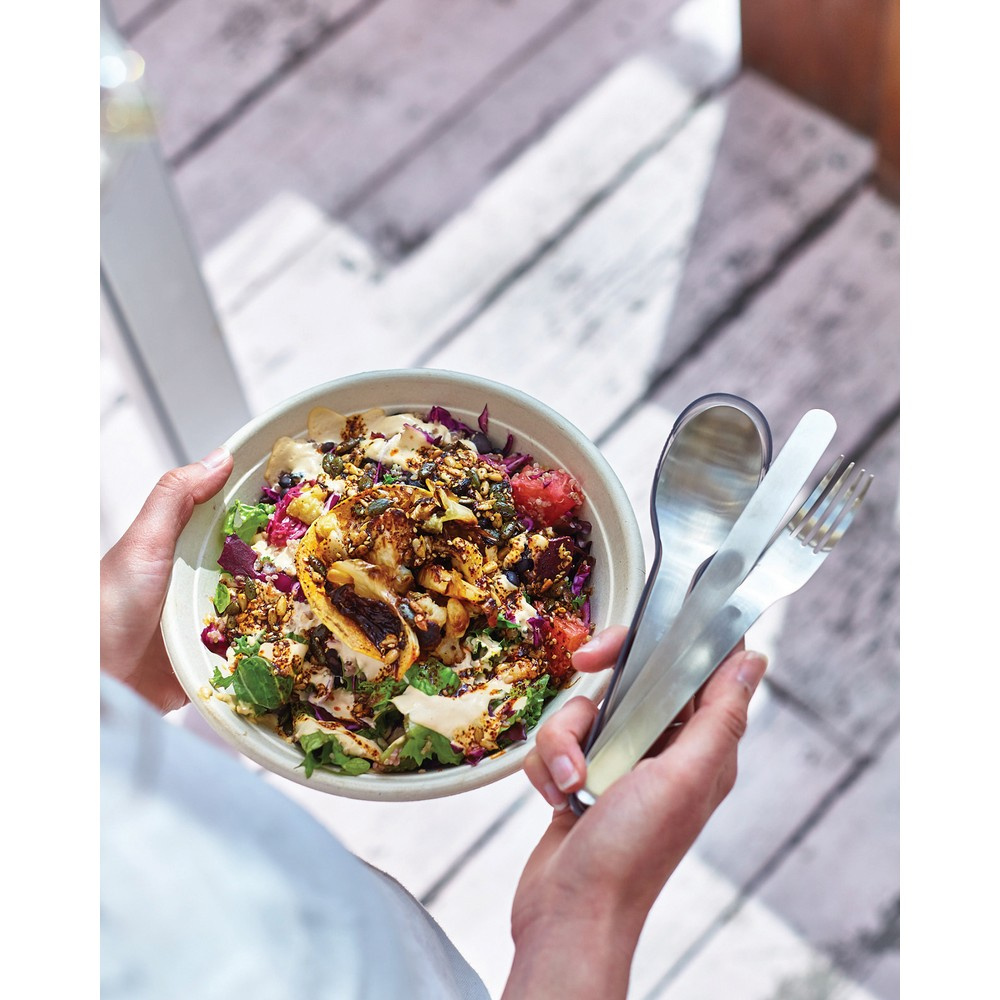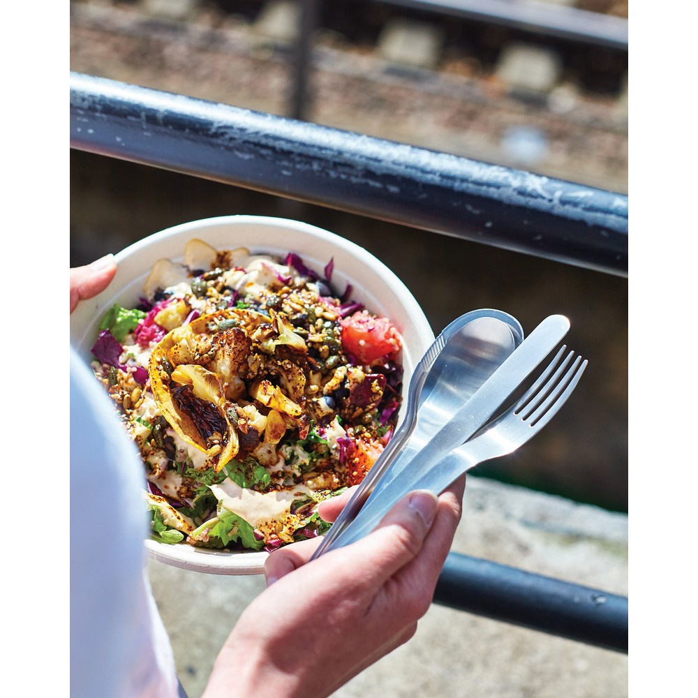 Zestaw sztućców, nóż, widelec oraz łyżka wykonane ze stali nierdzewnej, z etui wykonanym z PP, nadaje się do mycia w zmywarce