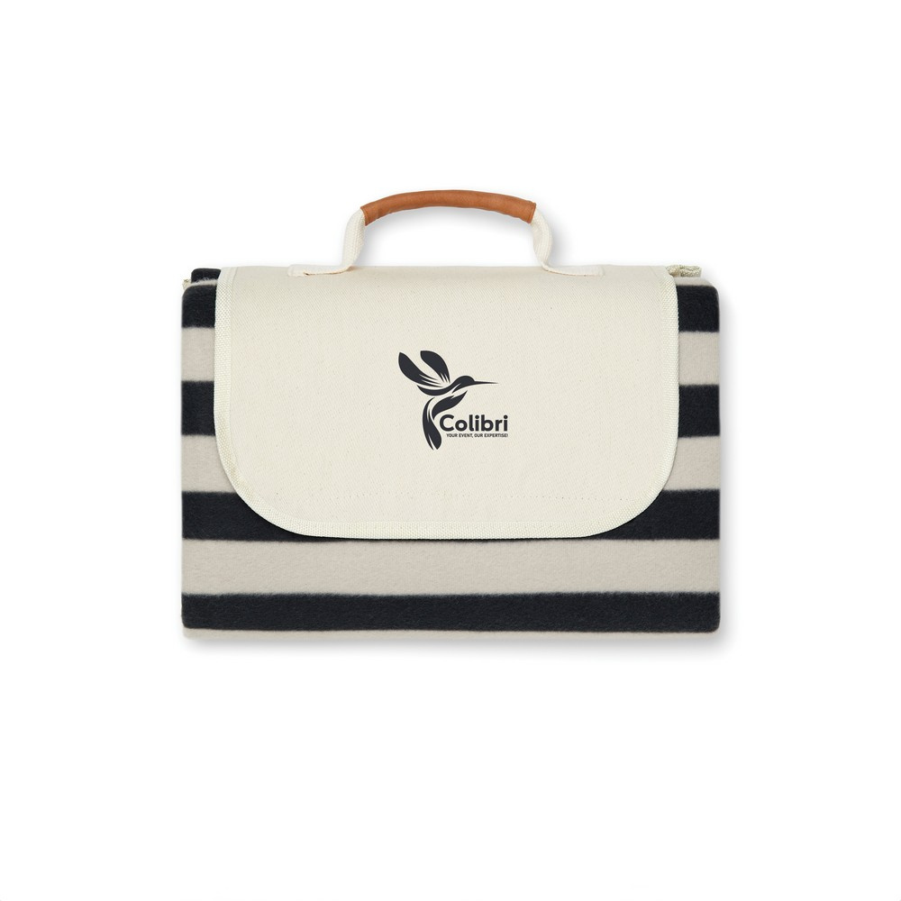 Koc piknikowy VINGA Alba RPET z miękkiego polaru z bawełnianym płótnem i detalami z PU, spód wykonany jest z materiału PEVA, który nie przepuszcza wody