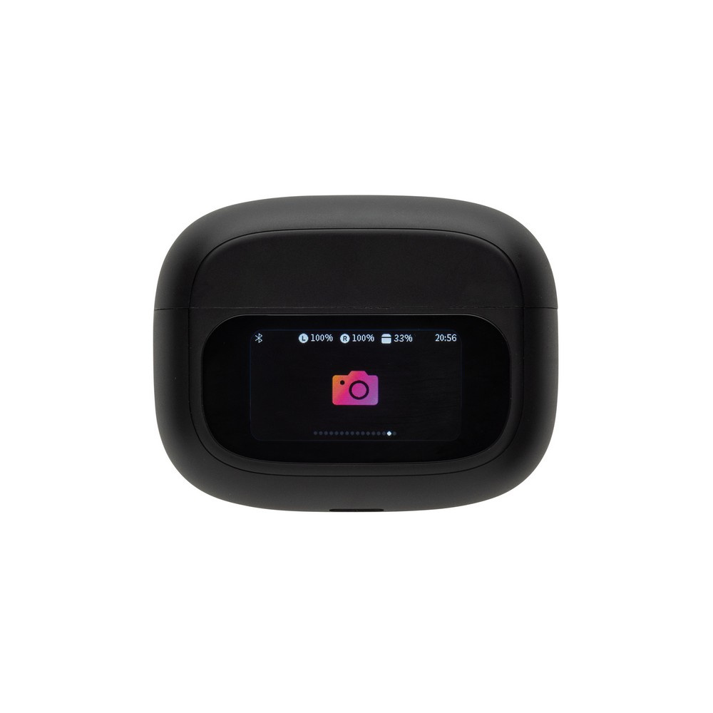 Bezprzewodowe słuchawki douszne z systemem aktywnej redukcji szumów (ANC), poziom redukcji szumów do 23 dB, BT 5.3, posiadają wbudowany ekran dotykowy