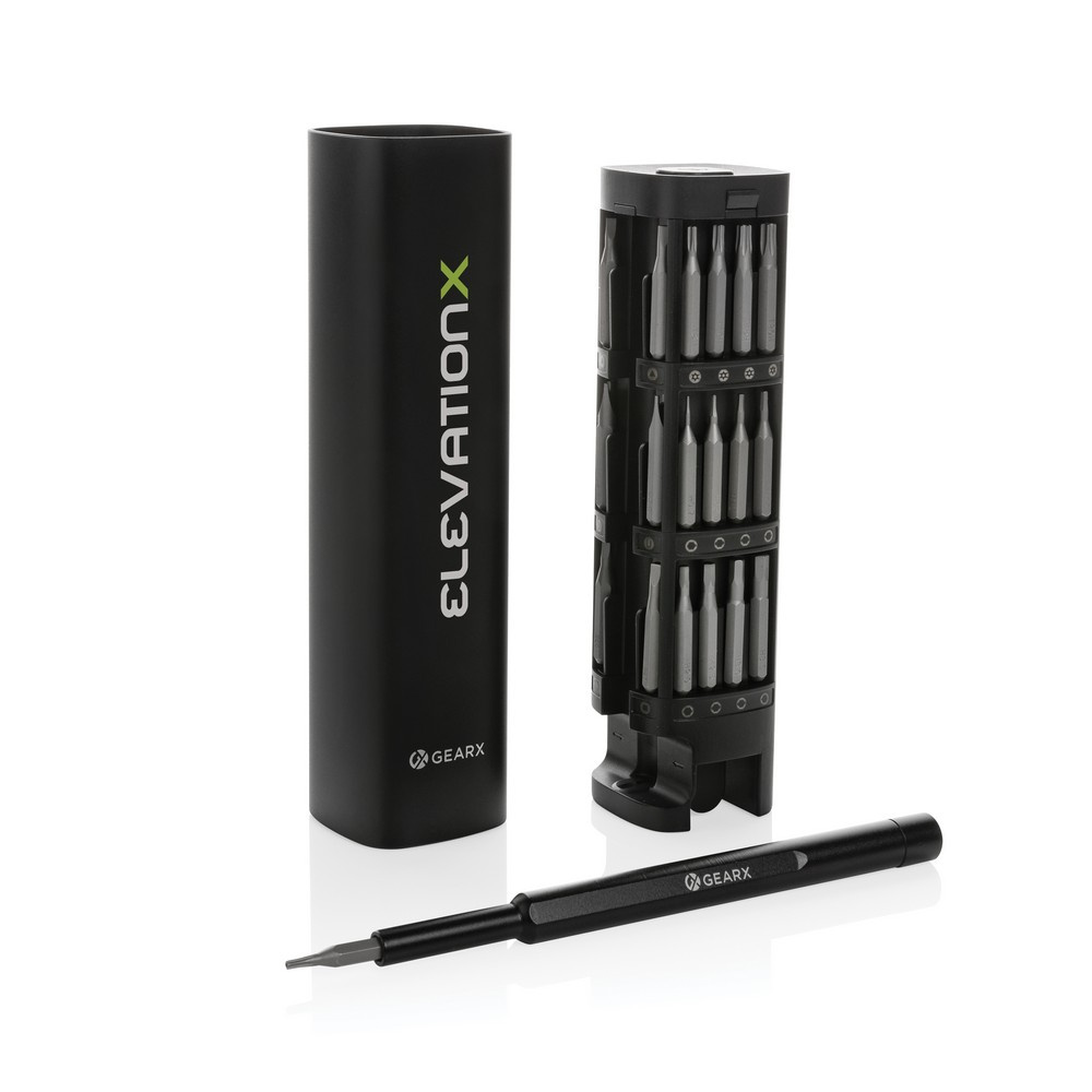 Śrubokręt, zestaw 56 końcówek w magnetycznym pudełku, etui wykonane z aluminium z recyklingu, całkowita zawartość materiałów z recyklingu obliczona na