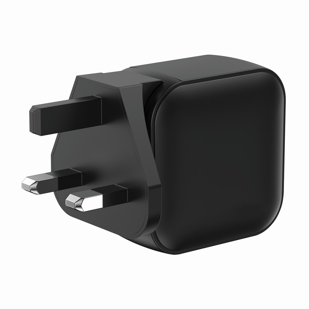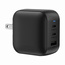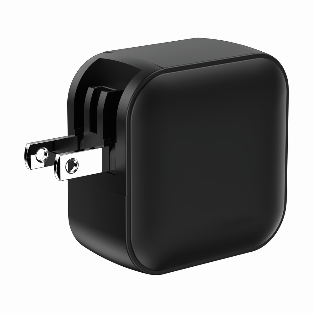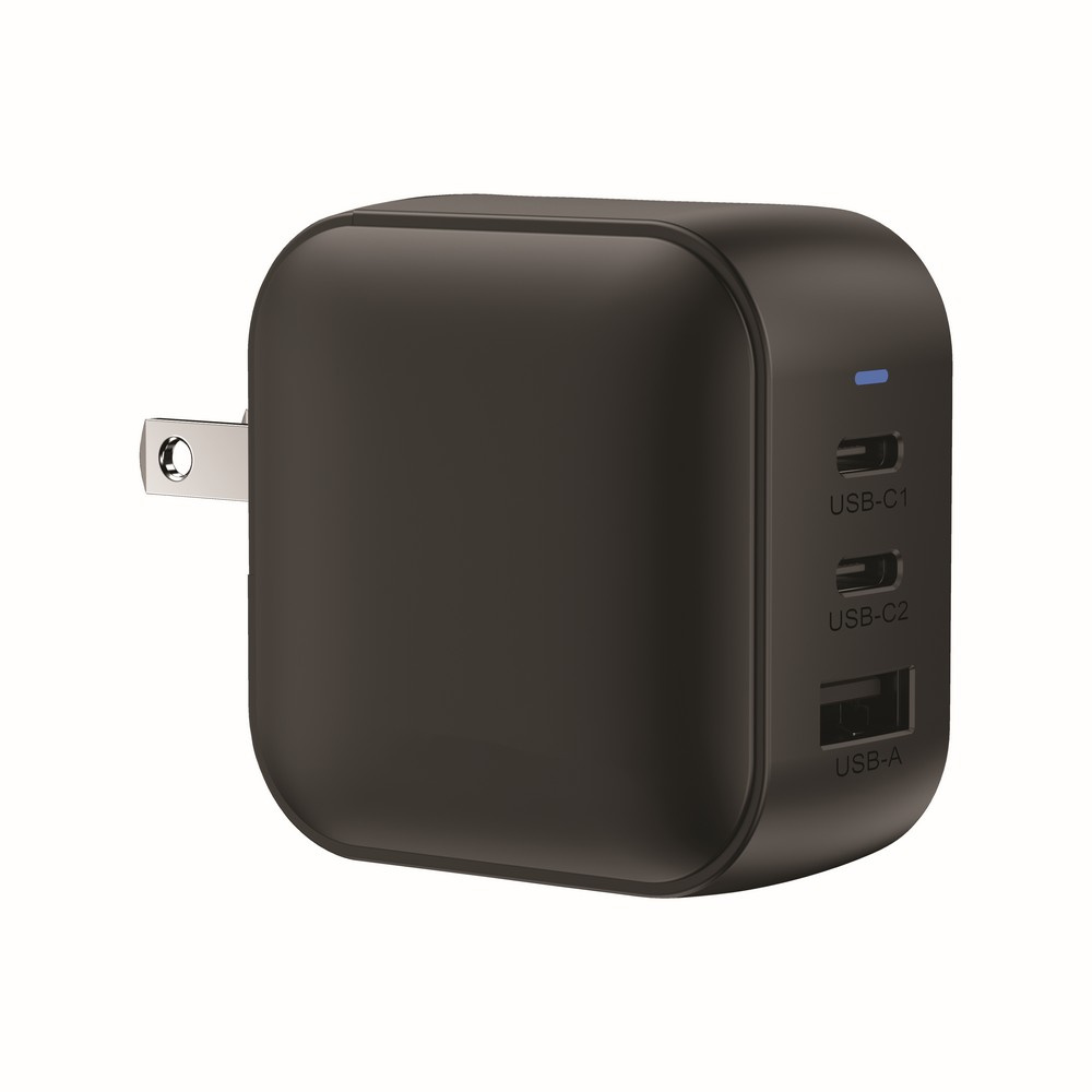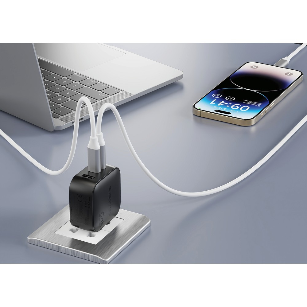 Ładowarka ścienna, adapter podróżny, moc całkowita do 70W, dwa wyjścia USB-C i USB, w komplecie wtyczki EU, GB i USA, wykonana z materiałów z recyklingu,