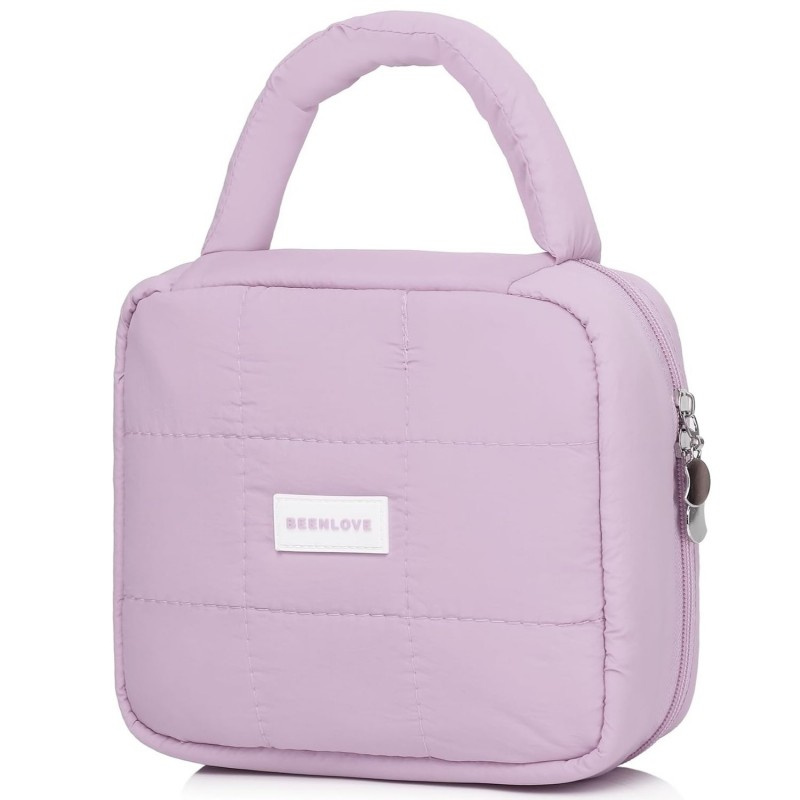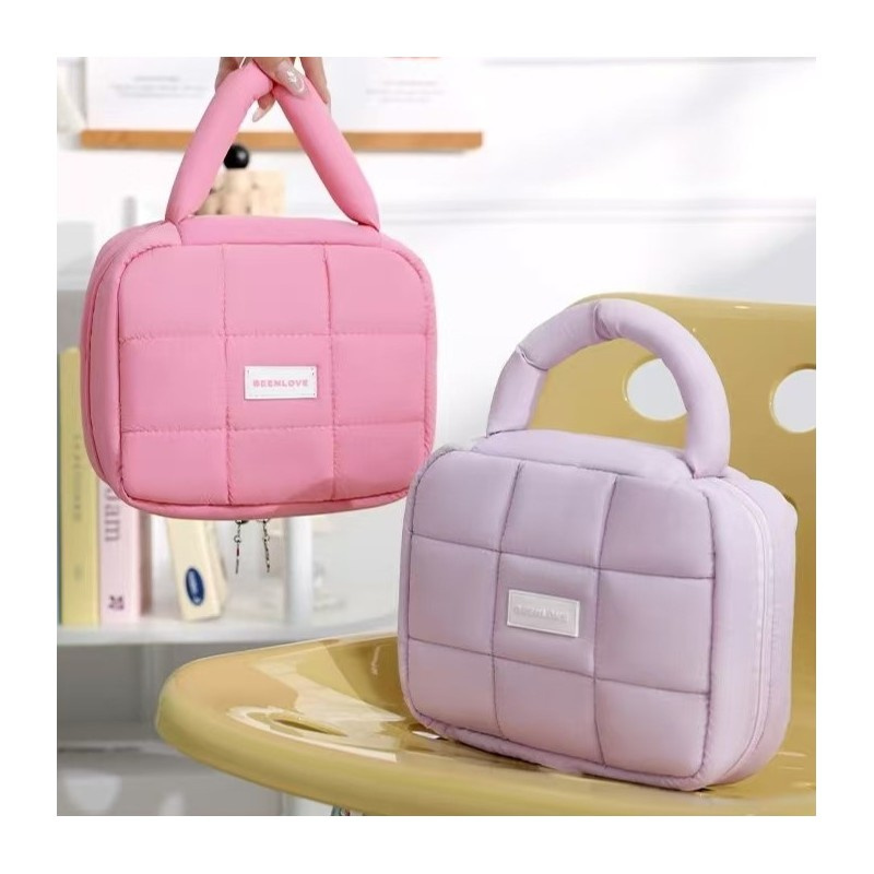 Kosmetyczka kuferek pikowana z rączką Wykonana z miękkiego, śliskiego materiału. Bardzo praktyczna i uniwersalna. Kosmetyczka w sam raz na dłuższe podróże czy wyjazdy - jest bardzo poręczna i pojemna, pomieści wszystkie niezbędne rzeczy. Posiada jedną dużą komorę zasuwaną na zamek, oraz 3 przegródki wewnątrz kosmetyczki. Wykonana z wodoodpornego materiału. Wymiary:  18,5 x 12,5 x 13 cm Materiał: Tworzywo sztuczne Waga:  g