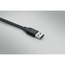 Kabel o mocy 60 W w obudowie z recyklingowanego ABS z brelokiem i podstawką na telefon. Wejście: 2-w-1 Typ-C i Typ-A. Wyjście: Typ-C i micro-B (2 w 1 pin). Długość kabla: 26 cm.