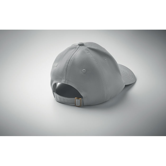 6-panelowa czapka z daszkiem z bawełnianego twillu 280 gr/m² z regulowanym paskiem i stalowym zapięciem. Daszek typu Oxford. Nadająca się do prania. Rozmiar 7 1/4.