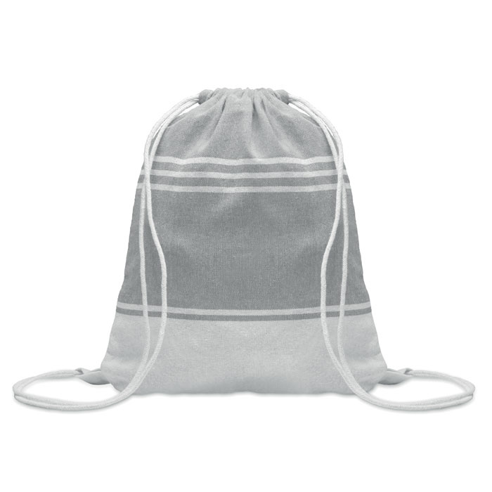 Zestaw z ręcznikiem plażowym hammam z workiem ze sznurkiem. 70% bawełna z recyklingu i 30% poliester z recyklingu 180 gr/m². 90x160 cm.