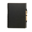 Notes z papieru z recyklingu z długopisem. Podwójna spirala. 140 czystych stron z papieru z recyklingu (70 kartek). Przyciskany długopis w kartonie pochodzącym z recyklingu i biodegradowalnego plastiku. Niebieski tusz. Czarny, elastyczny uchwyt na długopis.