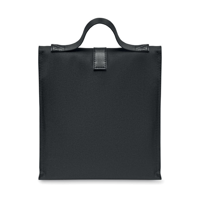 Izolowana torba na lunch z poliestru 600D RPET z uchwytem i zamknięciem z PU. Izolacja: 3 mm pianka PE z PEVA.