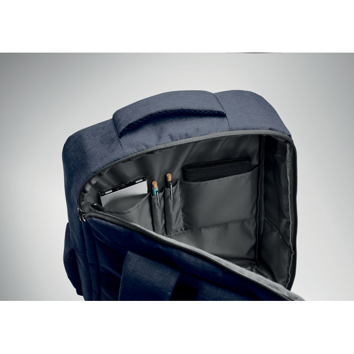 15-calowy plecak na laptop z 300D RPET z otworem 180 stopni i podszewką 210D RPET.