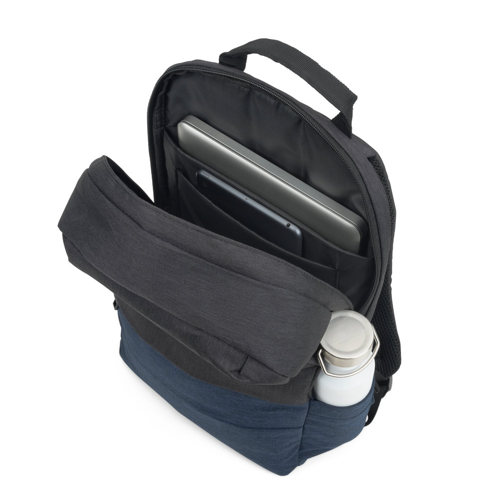 Plecak antykradzieżowy wykonany z wysokiej gęstości poliestru 600D pochodzącego z recyklingu. Posiada wyściełaną komorę główną z kieszenią na laptopa do 15.6„ i kieszeń na tablet do 10.1”. Plecak ma 1 przednią kieszeń zapinaną na zamek i boczną kieszeń do przenoszenia butelki. Na plecach znajduje się pasek do wózka na wypadek, gdyby był potrzebny. Pojemność do 16 l. 290 x 430 x 120 mm