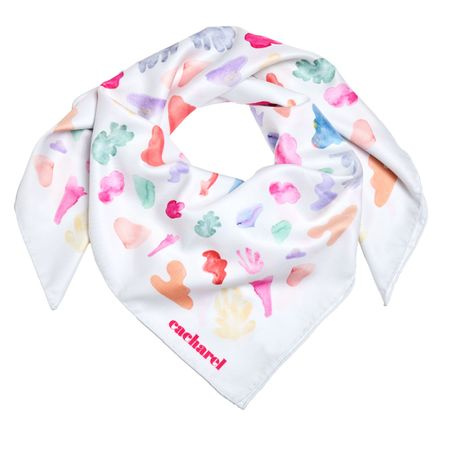 Szalik `Apolline` w kolorze złamanej bieli prezentuje miękkie, kolorowe odcienie i organiczne kształty inspirowane płynnymi formami natury.