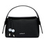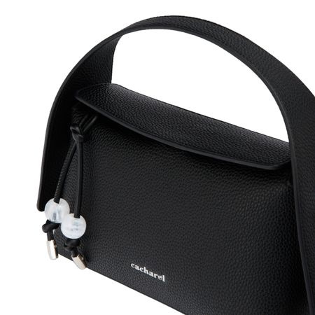 Torebka `Clementine` z czarnej, matowej, ziarnistej skóry wegańskiej (PU) charakteryzuje się nowoczesnym, współczesnym designem z eleganckim, ziarnistym, matowym wykończeniem skóry. Chromowane metalowe akcenty wnoszą dodatkowy powiew nowoczesności. Głęboki, minimalistyczny czarny kolor podkreśla zintegrowaną, nowoczesną sylwetkę, a nieoczekiwany design uchwytu zapewnia charakterystyczny akcent. Sygnowana kultowym logo `Cacharel` z przodu i tabliczką `C` z tyłu, torba łączy funkcjonalność z zdecydowanym stylem. Nowoczesny, ostry design w połączeniu z subtelnymi czarnymi teksturami sprawiają, że jest to wyróżniający się dodatek.