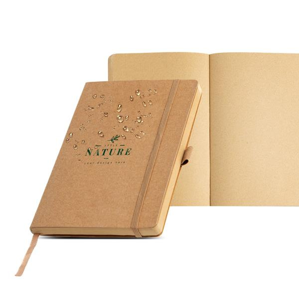 Notes A5 z okładką z wodoodpornego papieru i kraftowymi kartkami. W odróżnieniu od wszystkich innych notesów w naszej kolekcji, ten nowy produkt ma wodoodporną okładkę, co czyni go bardziej trwałym i odpornym. 160 stron tego notesu wykonane są z papieru kraftowego o gramaturze 80 g/m².