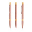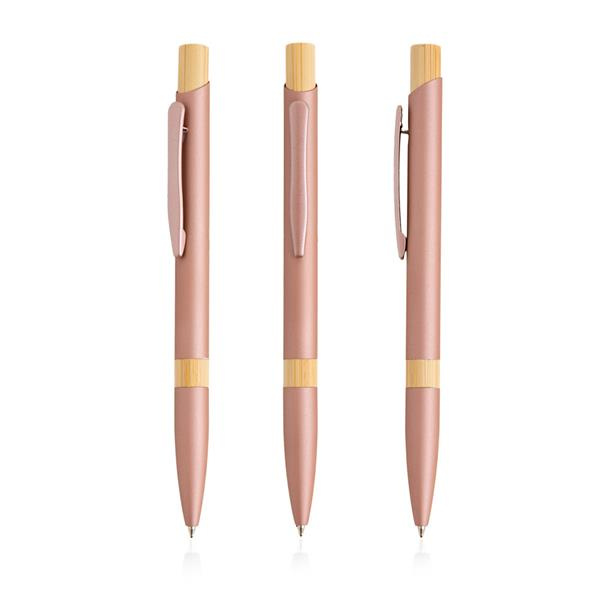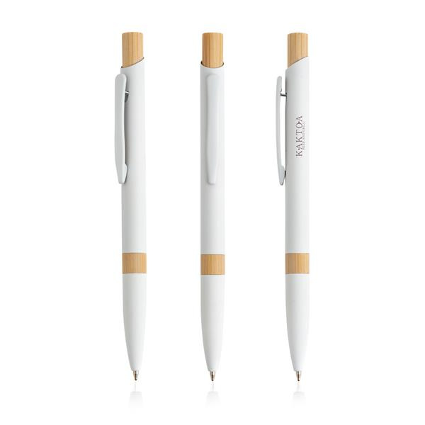 Ten długopis piszący na niebiesko ma nowoczesny design, łączący metal z naturalnym bambusem, tworząc niezapomniany prezent.