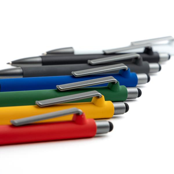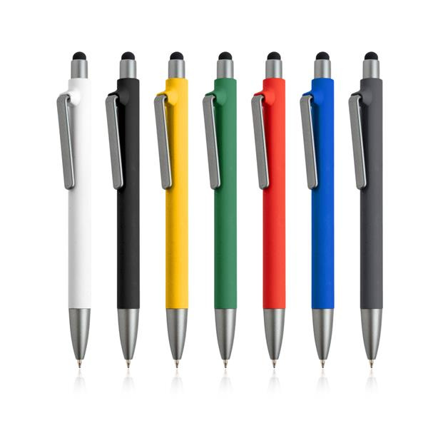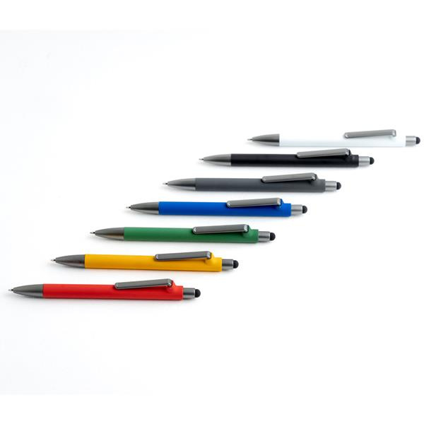 Ten długopis dotykowy, dostępny w szerokiej gamie kolorów, ma mechanizm wciskany i pisze na niebiesko.