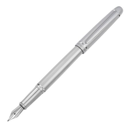 To wykonane w całości ze srebra pióro wieczne o klasycznym kształcie, ozdobione szewronowym grawerem nawiązującym do tytułowej linii torebek, łączy w sobie ponadczasową elegancję z nowoczesną finezją. Kontrastujący matowy i błyszczący srebrny pierścień i wykończenia podkreślają jego wyrafinowanie, oferując najwyższą jakość w konkurencyjnej cenie.