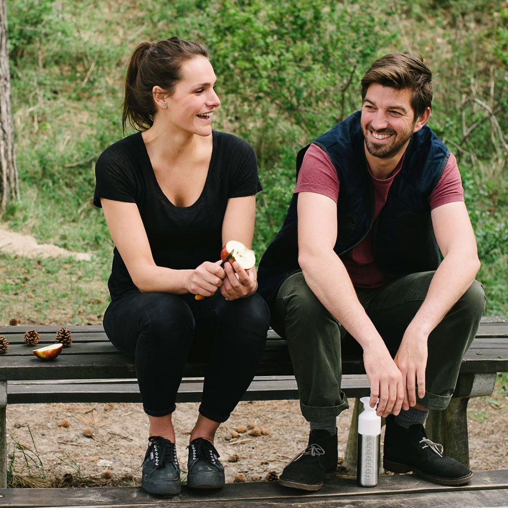 Dbasz o środowisko? Lubisz ładny i praktyczny design? Jeśli tak, to stalowa butelka wielokrotnego użytku marki Dopper będzie idealnym wyborem. Unikatowy wzór autorstwa Rinke van Remrtela, najwyższej jakości materiały użyte do produkcji (bez BPA i ftalanów) oraz praktyczny kubek ukryty w zatyczce sprawiają, że jest to czego potrzebujesz! Butelka składa się tylko z trzech części - dzięki czemu można bardzo szybko umyć ją ręcznie lub po prostu wrzucić do zmywarki. Warto również dodać, że butelki Dopper stały się bardzo ważną częścią kultury holenderskiej. Zawdzięczają to nie tylko wyjątkowemu wzornictwu i jakości wykonania, ale przede wszystkim misji społecznej. Dzięki używaniu butelek wielokrotnego użytku możemy zmniejszyć ilość odpadów plastikowych. Dodatkowo 5% zysków firmy trafia bezpośrednio do fundacji, która wspiera między innymi projekty związane z dostarczaniem wody pitnej w Nepalu i oczyszczaniu oceanów. Dane techniczne: Pojemność: 490 ml Trzy części, bardzo łatwe do czyszczenia Można myć w zmywarce do 65 ° C / 149 ° F Do ciepłej i zimnej wody Ta butelka to nie termos! Materiały: Stal nierdzewna 18/8 (zakrętka i butelka) Tritan (kubek) TPE - elastomer termoplastyczny (uszczelka w czapce i kubku) Nie zawiera BPA / plastyfikator jest nietoksyczny