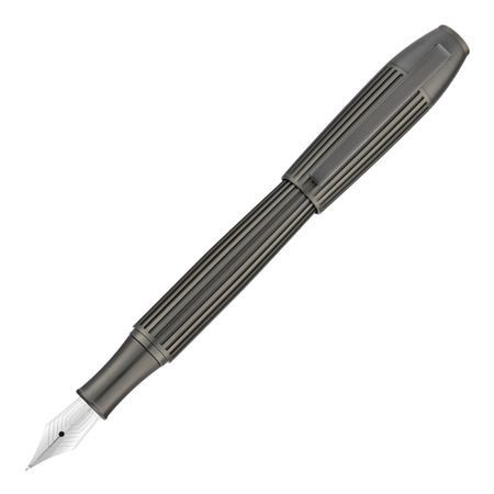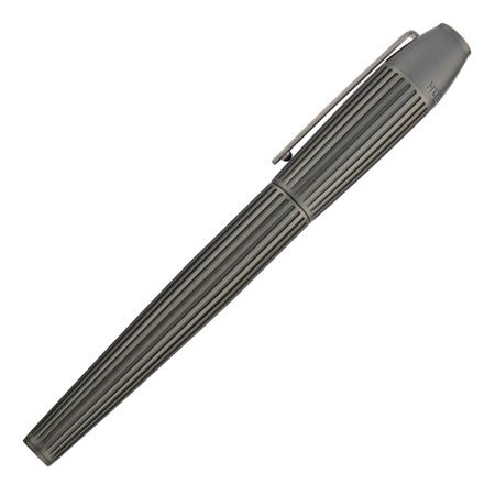 Ten kształt zapewnia idealną równowagę między siłą i elegancją, charakteryzując się głębokim, ponadwymiarowym wzorem w prążki. Pokryty luksusowym matowym odcieniem brązu, element emanuje minimalistycznym, ale skomplikowanym i wyrafinowanym charakterem. Skrupulatne rzemiosło i subtelne detale sprawiają, że jest on zarówno cenny, jak i dyskretny. Jego konstrukcja prezentuje odważną współczesną estetykę, co skutkuje uderzającym instrumentem piśmiennym.