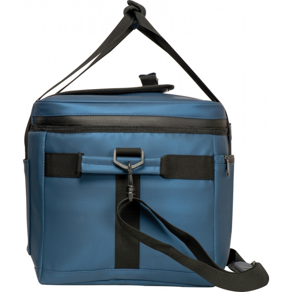 Duża torba chłodząca z regulowanym paskiem na ramię, z możliwością odpięcia oraz dwoma krótkimi uchwytami do przenoszenia.