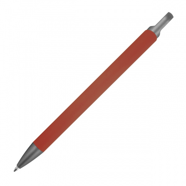 Długopis soft touch, wykonany z aluminium pochodzącego z recyklingu, z pół żelowym wkładem piszącym na niebiesko, z końcówką 0,5 mm.