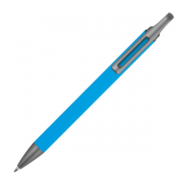 Długopis soft touch, wykonany z aluminium pochodzącego z recyklingu, z pół żelowym wkładem piszącym na niebiesko, z końcówką 0,5 mm.