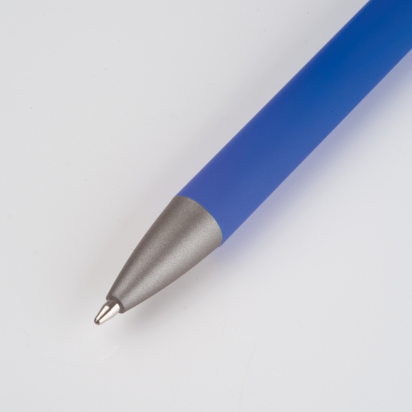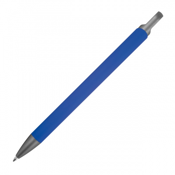 Długopis soft touch, wykonany z aluminium pochodzącego z recyklingu, z pół żelowym wkładem piszącym na niebiesko, z końcówką 0,5 mm.