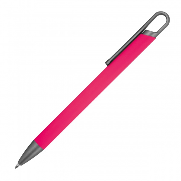 Długopis soft touch, wykonany z aluminium pochodzącego z recyklingu, z pół żelowym wkładem piszącym na niebiesko, z końcówką 0,5 mm.