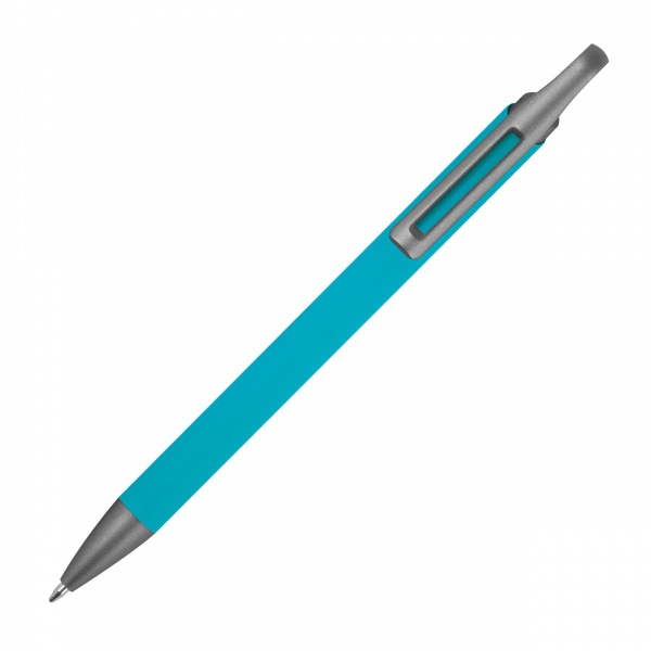 Długopis soft touch, wykonany z aluminium pochodzącego z recyklingu, z pół żelowym wkładem piszącym na niebiesko, z końcówką 0,5 mm.