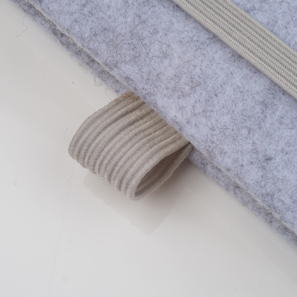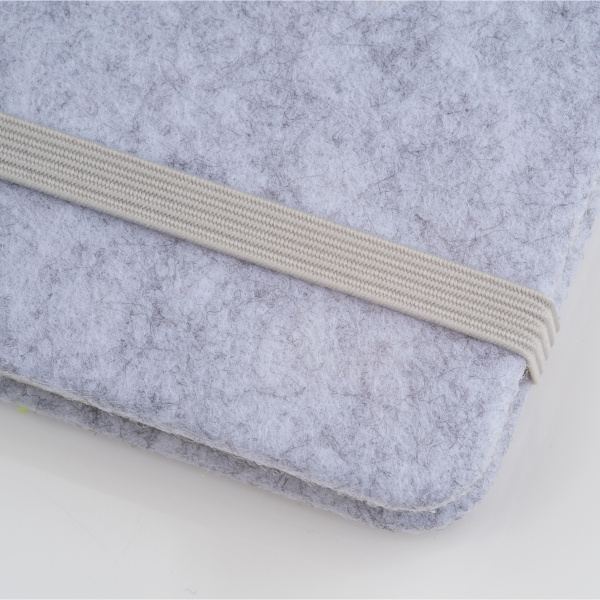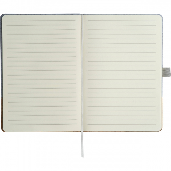 Notes A5 w oprawie z filcu i korka pochodzących z recyklingu, z gumką do zamykania i pętelką na długopis.