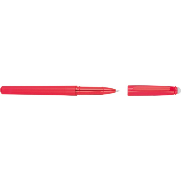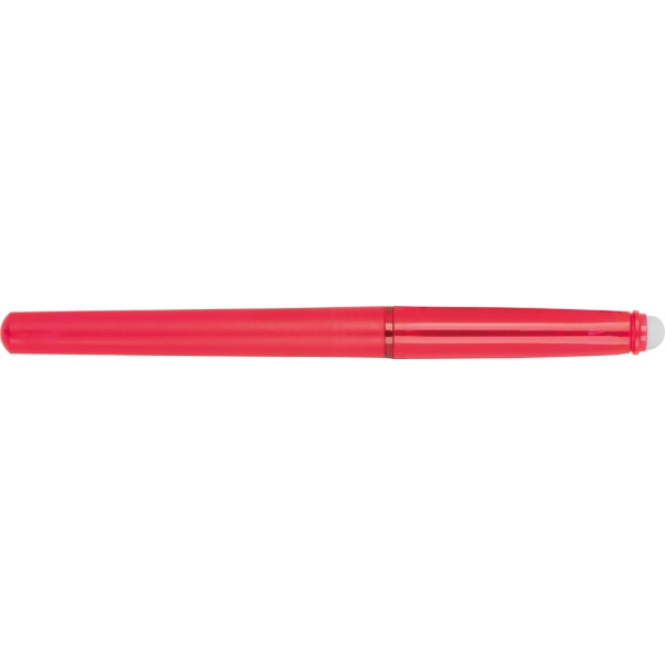 Plastikowy długopis z żelowym wkładem i gumką do mazania w zatyczce.