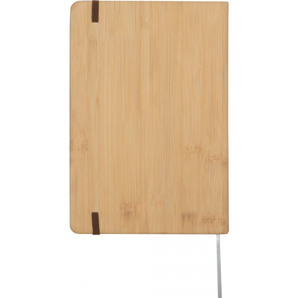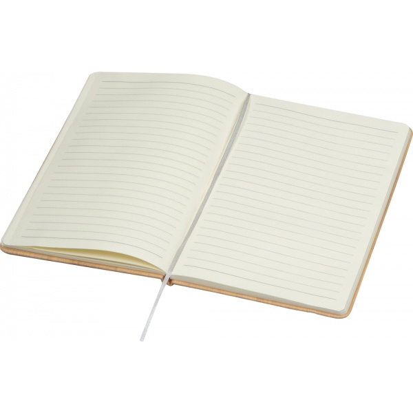 Notatnik A5 w okładce przypominającej drewno, z zamknięciem na gumkę, zakładką i 80 stronami w linie.