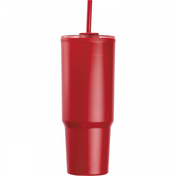 Kubek XXL, o pojemności 1200 ml, z podwójnymi ściankami, uchwytem do przenoszenia i słomką do picia.