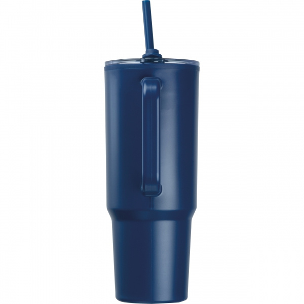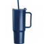 Kubek XXL, o pojemności 1200 ml, z podwójnymi ściankami, uchwytem do przenoszenia i słomką do picia.