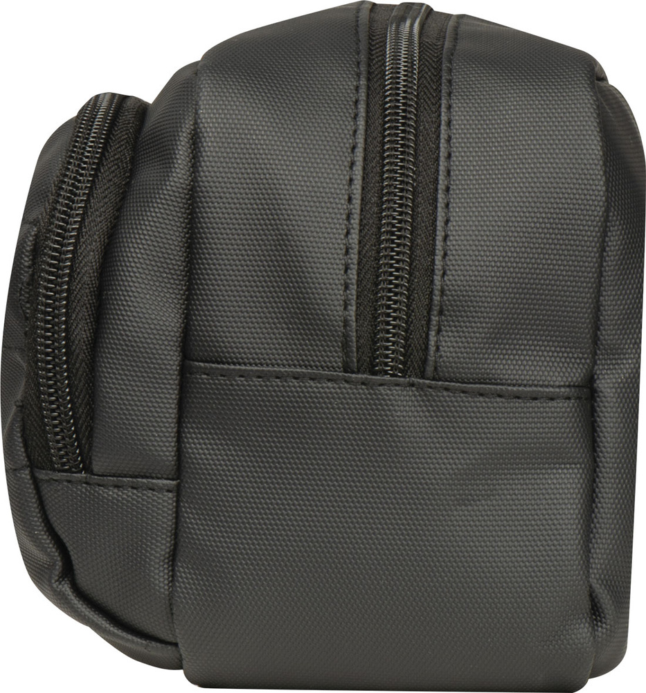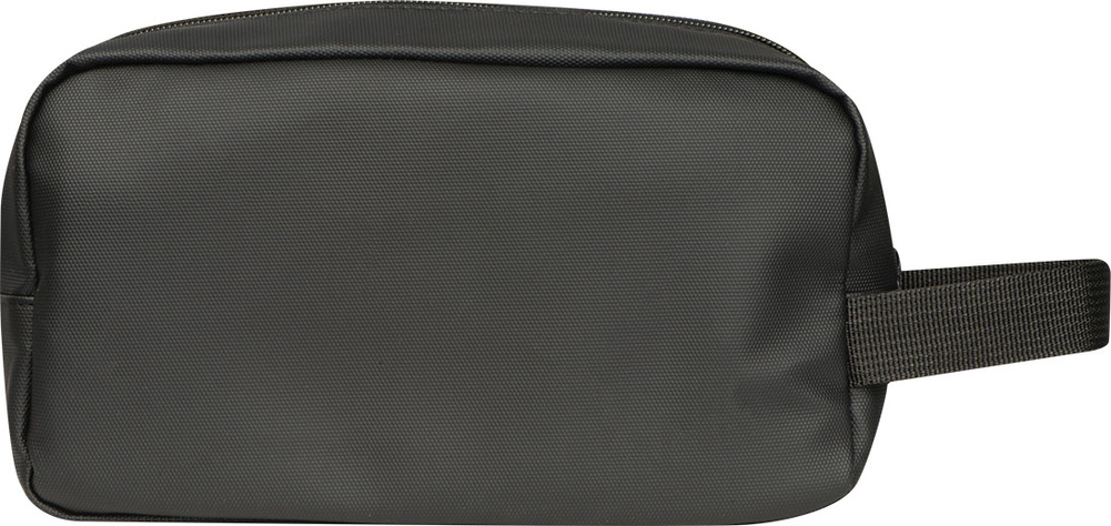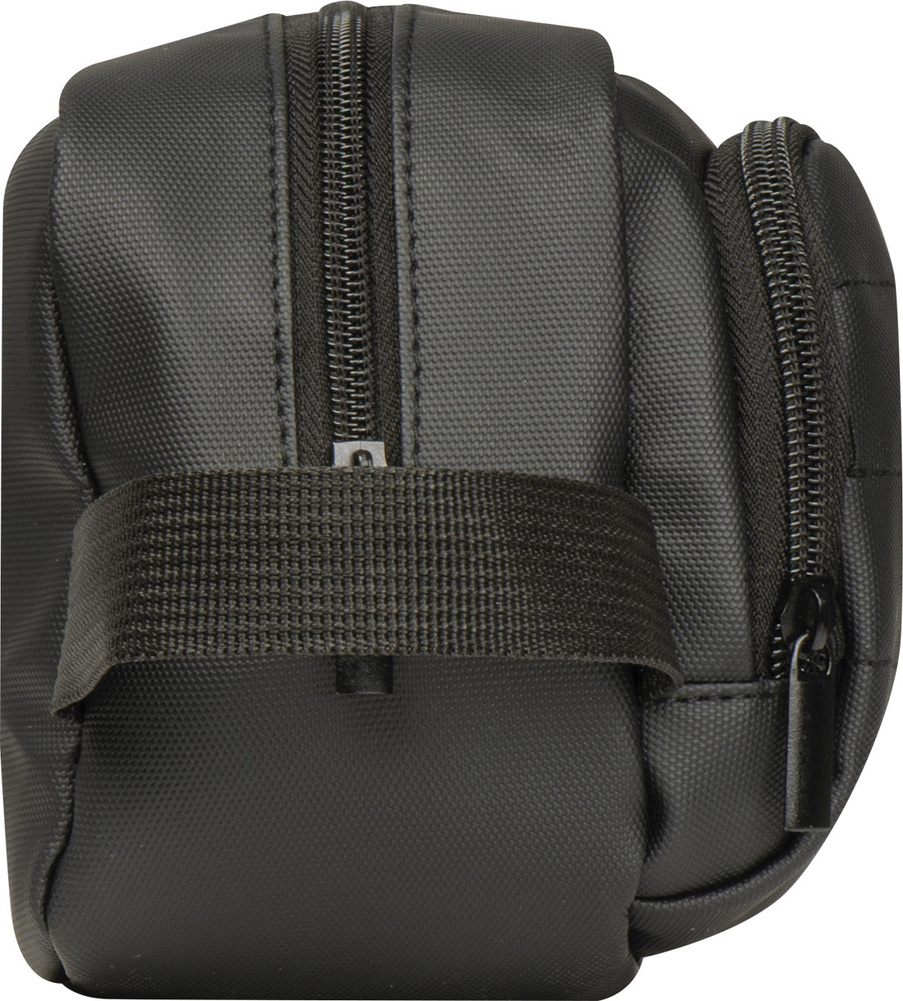 Kosmetyczka z PU, z dwoma kieszeniami zamykanymi na zamek oraz rączką do przenoszenia.