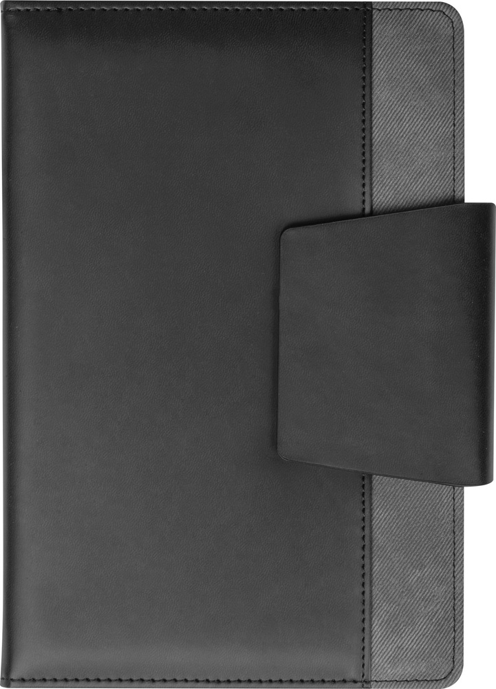 80 kartkowy notes o formacie A5, w linie, w okładce wykonanej z PU pochodzącego z recyklingu, z magnetycznym zamknięciem.