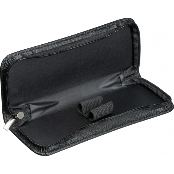Piórnik na dwa przybory piśmiennicze, wykonany z PU pochodzącego z recyklingu, zamykany na zamek.