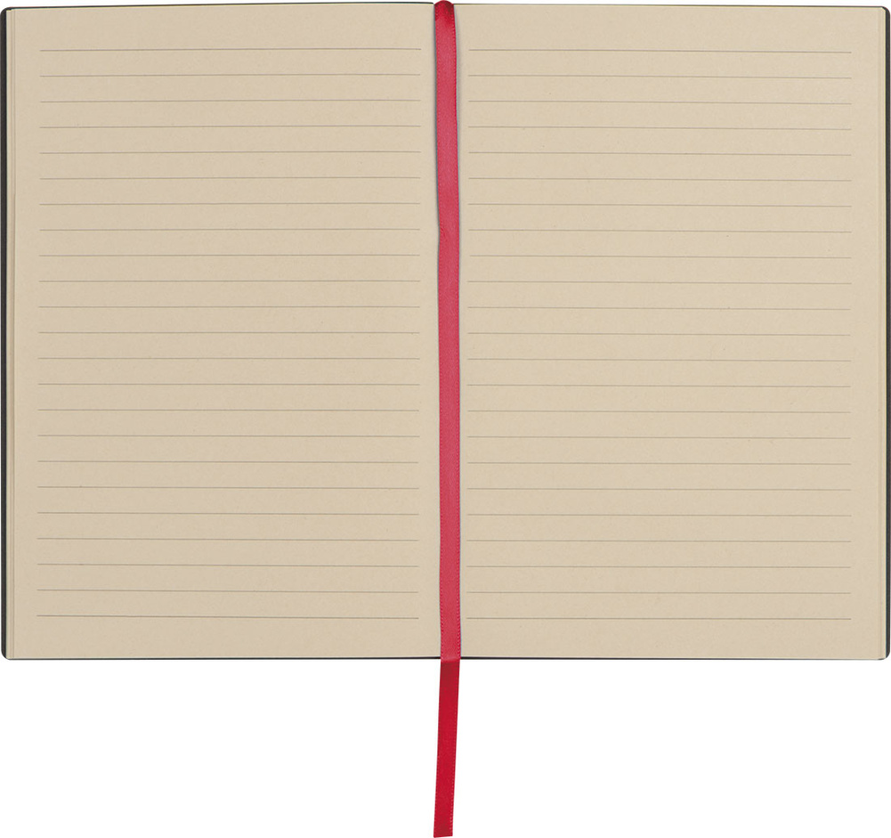Notes A5 w linie, z 80 kartkami z trzciny cukrowej, elastyczną okładką i materiałową zakładką.