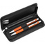 Zestaw piśmienny składający się z piszącego na niebiesko długopisu ze srebrnymi elementami i dopasowanego ołówka automatycznego.