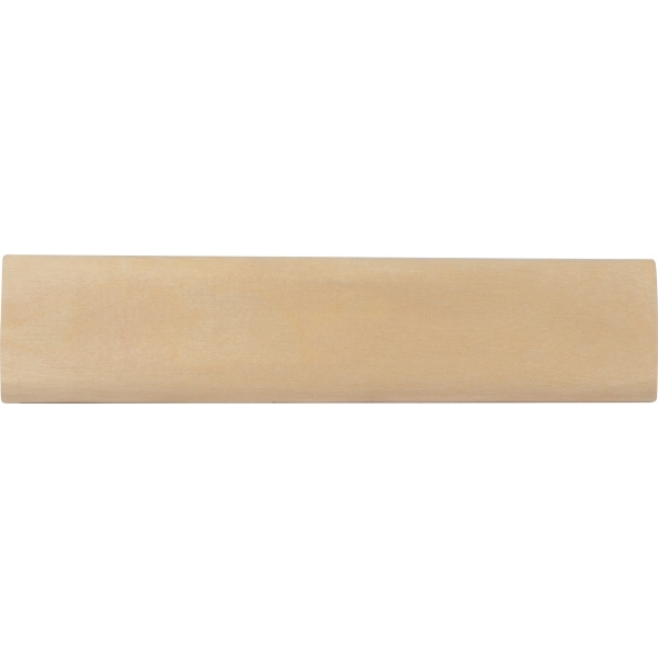 Zestaw spakowany w drewniany piórnik składający się z: linijki, ołówka, gumki do zmazywania, temperówki i długopisu.