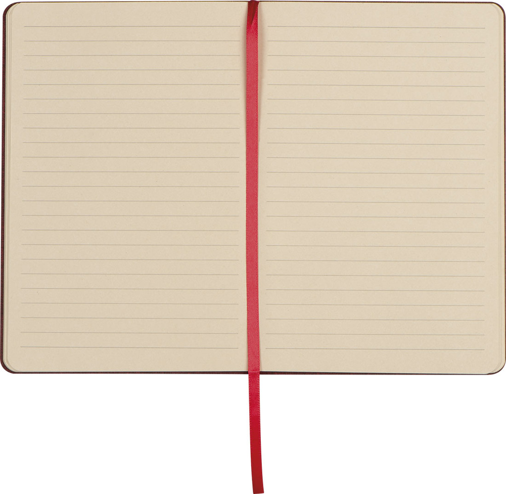 Notes A5 w linie, z 80 kartkami z trzciny cukrowej, z okładką z RPET, zakładką i zamknięciem na gumkę.