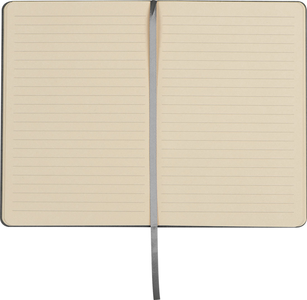Notes A5 w linie, z 80 kartkami z trzciny cukrowej, z okładką z RPET, zakładką i zamknięciem na gumkę.