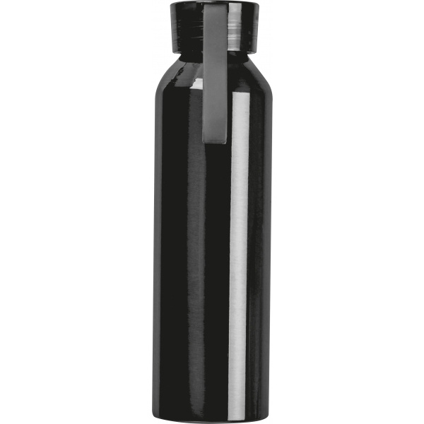 Butelka wykonana z aluminium pochodzącego z recyklingu, posiada półprzezroczystą zakrętkę z uchwytem do przenoszenia.